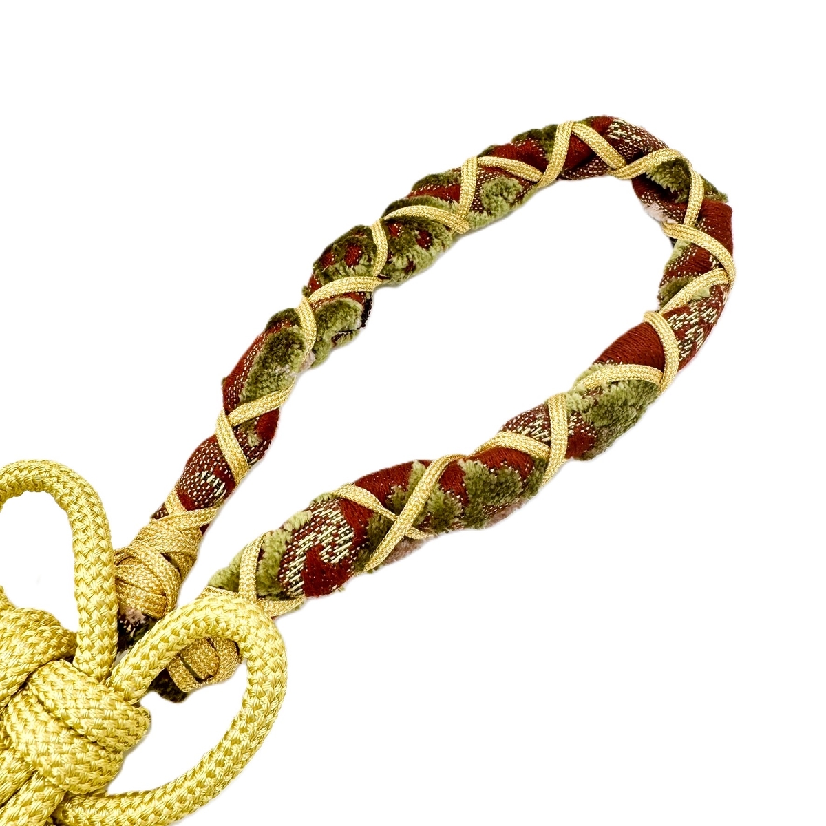 - 絆オリジナル【金華山組紐ミラータッセル】ゴージャスな菊結びタッセルをベースに、ゴールド紐で金華山を結んだ豪華絢爛なオリジナルタッセル!(花かごレッド/ゴールド)