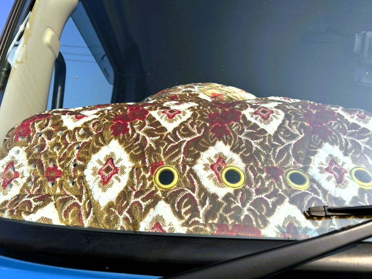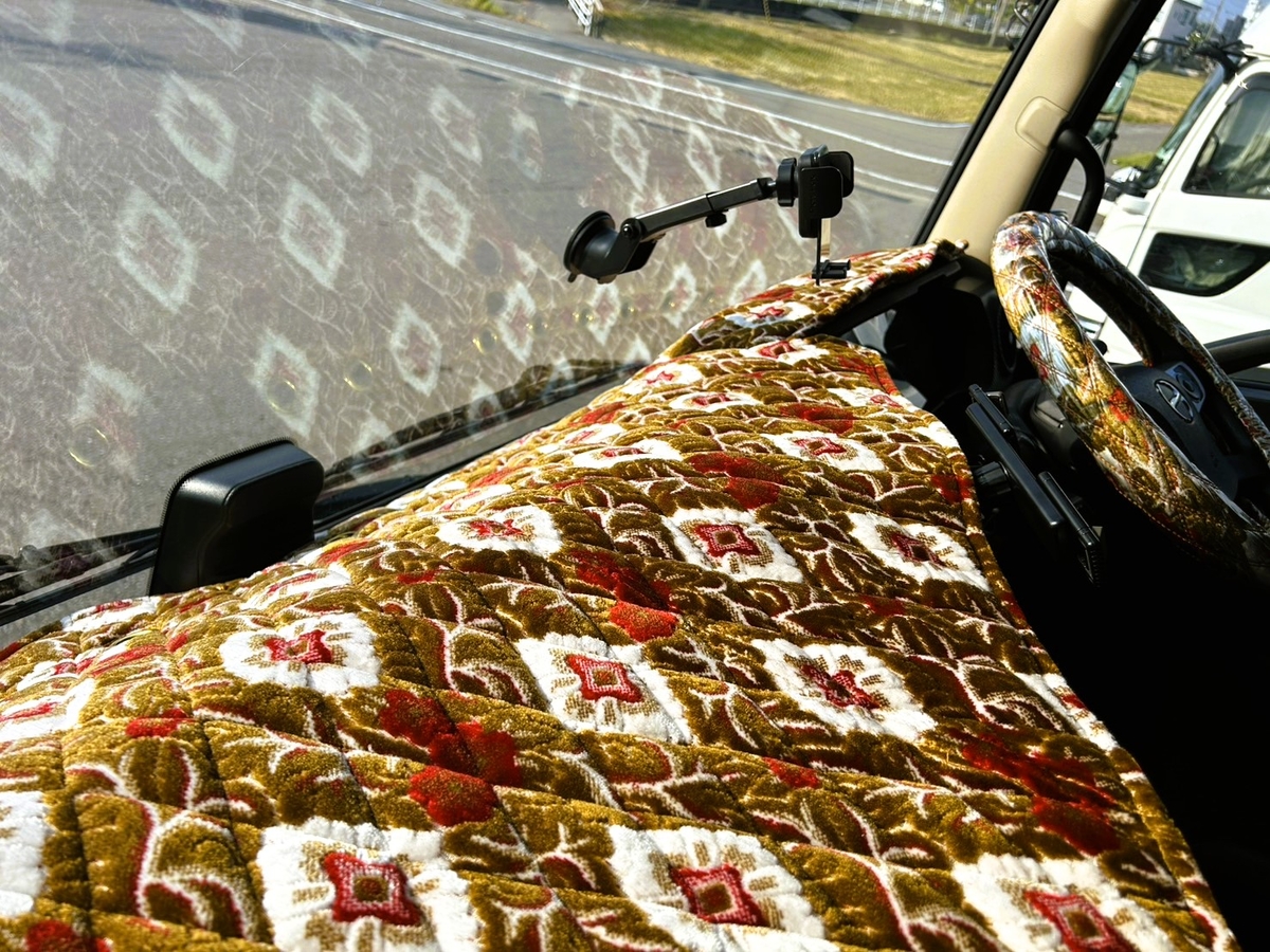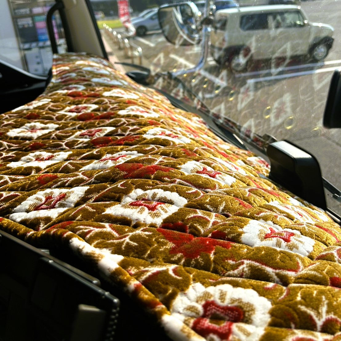 - 綿2倍盛り!【金華山ダッシュマット】綿入り小キルト加工&ゴールドリング&縦柄 フレンジ無し仕様(大花束オレンジ)